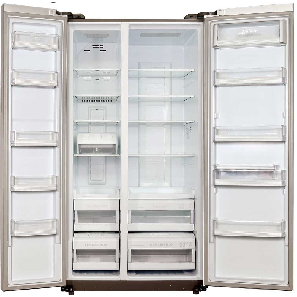 Вместительный холодильник Kaiser Side-by-side KS 90210 G с баром для напитков. Бар для напитков оснащен независимой дверкой которая при открывании предотвращает попадание воздуха в основное холодильное отделение. Вместе с Ice Maker устройством производящим кубики льда получается отличное сочетание. Морозильное отделение с пятью полками Logic space, которые моются в посудомоечной машине легче поддерживать в чистоте. Холодильник отлично приспособлен для хранения фруктов и овощей в отделении Vitamin – «сухой» бокс для увеличения срока хранения. Для более длительного хранения с регулировкой влажности подойдет GARDEN BOX. Характеристики и оснащение передовой немецкой модели будут радовать любую семью.