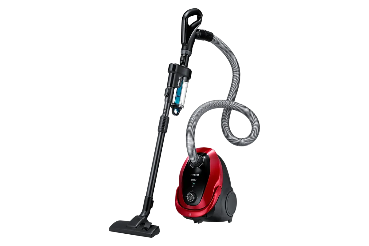 2-киловаттный пылесос Samsung SC20M257AWR обладает впечатляющей мощностью всасывания: она приравнивается к 460 Вт. Модель с легкостью справится даже с сильными загрязнениями. Вы сможете регулировать мощность всасывания в широких пределах: эту возможность обеспечивает поворотный регулятор, расположенный на корпусе пылесоса. Значительный (он равен 9.2 м) радиус действия пылесоса гарантирует вам свободу перемещений в ходе уборки любых помещений, в том числе больших комнат и коридоров сложной формы. Длина сетевого шнура, используемого для подключения пылесоса к электрической сети, равна 6 м.Пылесос Samsung SC20M257AWR использует для сбора пыли мешок, емкость которого равна 2.5 л. Предусмотрена телескопическая труба всасывания: регулировать ее длину вы сможете по своему усмотрению. Благодаря расположению фильтра EZClean Cyclone на ручке прибора его заполненность определяется довольно легко. Все, что потребуется для очистки фильтра - вынуть центральный стержень и высыпать содержимое. Ваши руки останутся чистыми. Модель имеет сравнительно невысокий уровень шума: он равен 83 дБ. В комплектацию пылесоса входит насадка для пола и ковров. Габаритные размеры корпуса прибора, частично окрашенного в стильный красный цвет, составляют 280x390x246 мм. Масса пылесоса – 4.3 кг.