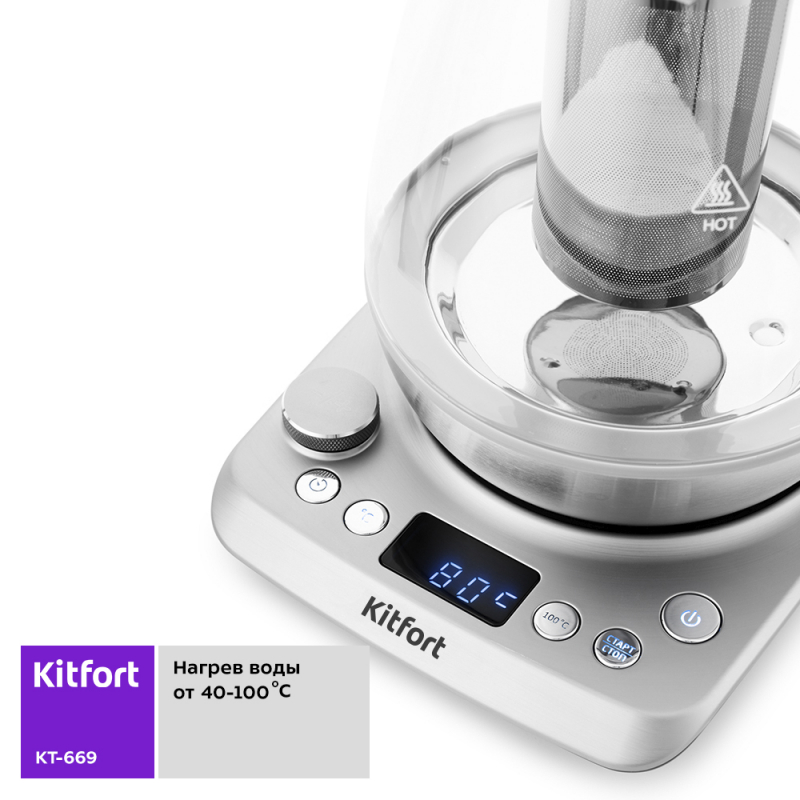 Электрический чайник с терморегулятором Kitfort КТ-669 удобен не только для кипячения воды, но и для приготовления детского питания, заваривания травяных чаёв, приготовления йогурта или любых других целей.