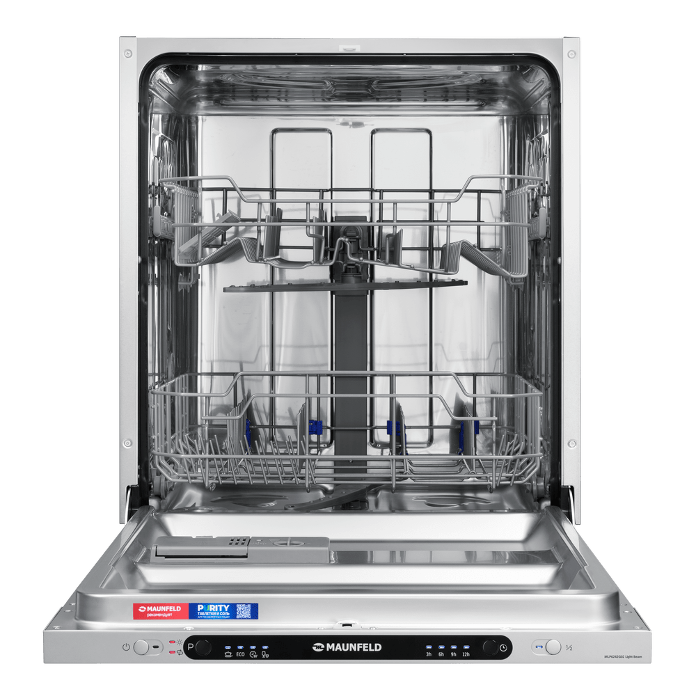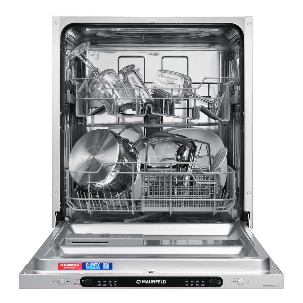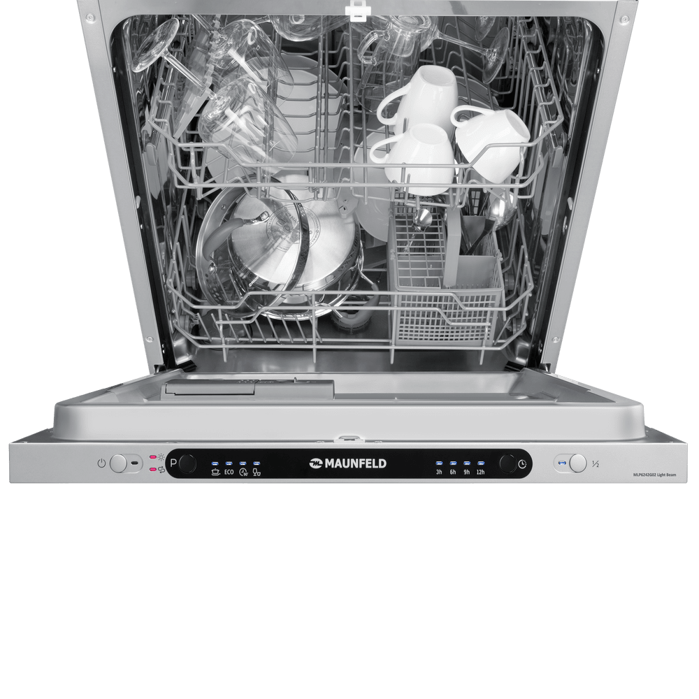 Большая посудомоечная машина для большой семьиПолноразмерная посудомоечная машина MAUNFELD MLP6242G02 Light Beam подойдёт большим семьям, тем кто любит часто готовить или принимать гостей. Она избавит вас от необходимости мыть посуду вручную. Машина вместительная, в неё можно загрузить до 12 комплектов посуды. Удобный индикатор луч на полу - приятное дополнение к основным функциям.